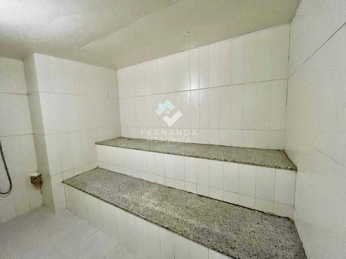 O condomínio oferece diversas facilidades, como interfone, zelador, portaria 24 horas, 2 elevadores, portão automático, 1 vaga de garagem, piscina aquecida, sauna a vapor, salão de festas, banheiros feminino e masculino, e ainda aceita pets.