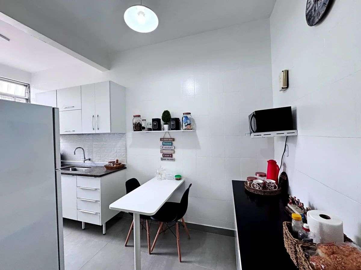 Com sala ampla e iluminada, 2 quartos aconchegantes e um quarto extra que pode ser escritório ou ateliê, o apartamento ainda conta com cozinha planejada, área de serviço independente, pé-direito alto e sol da manhã, garantindo ambientes claros e arejados.