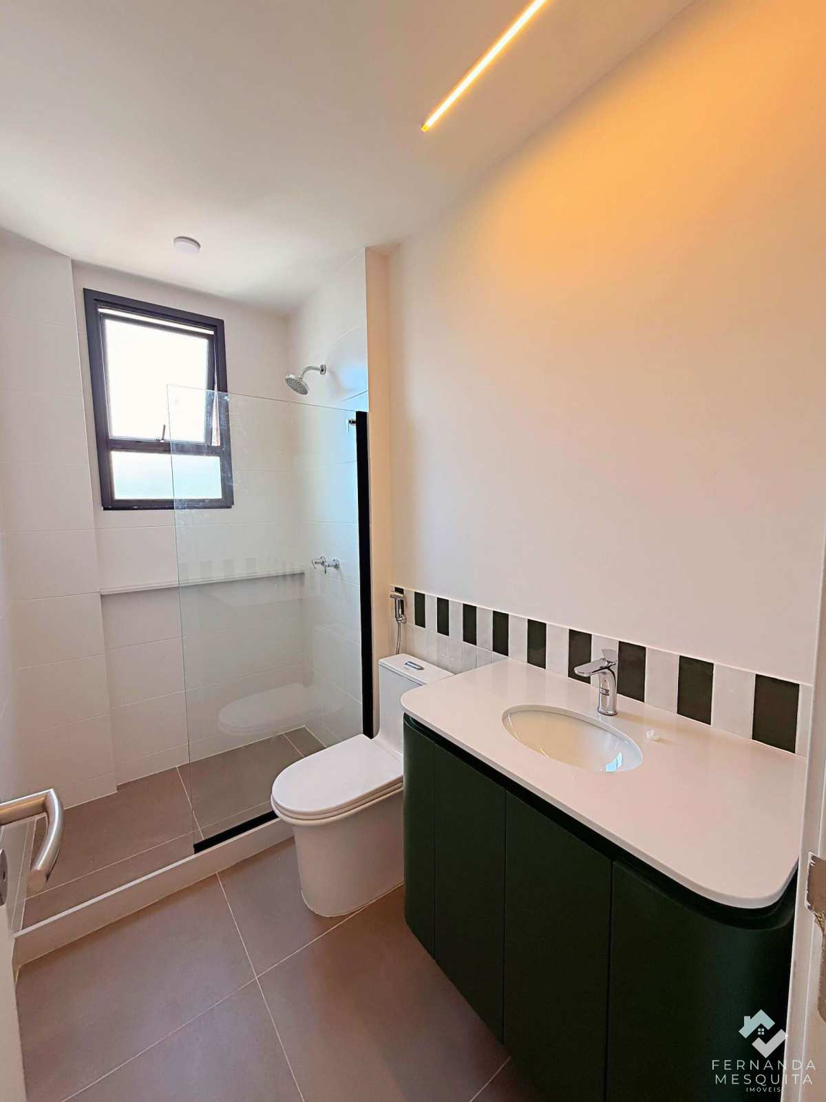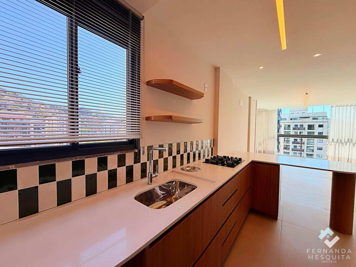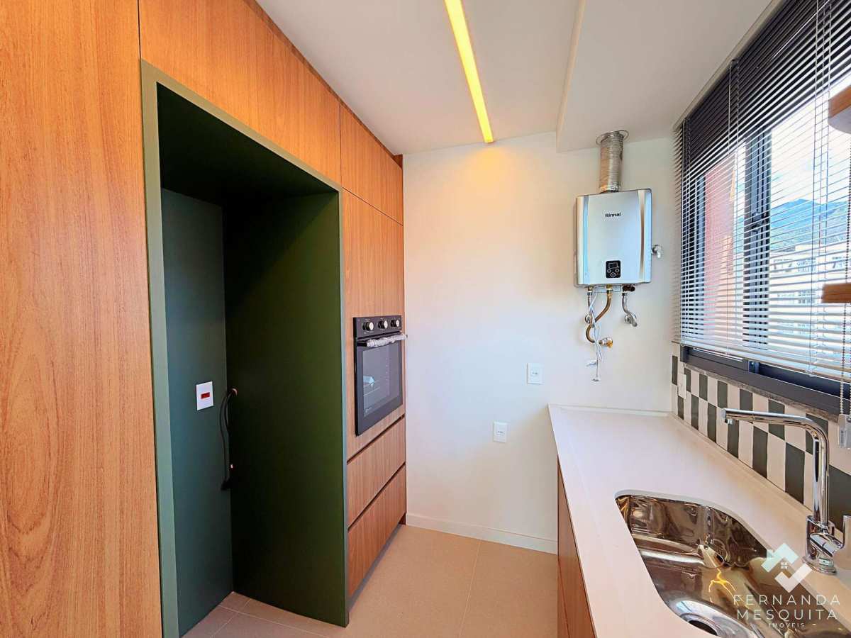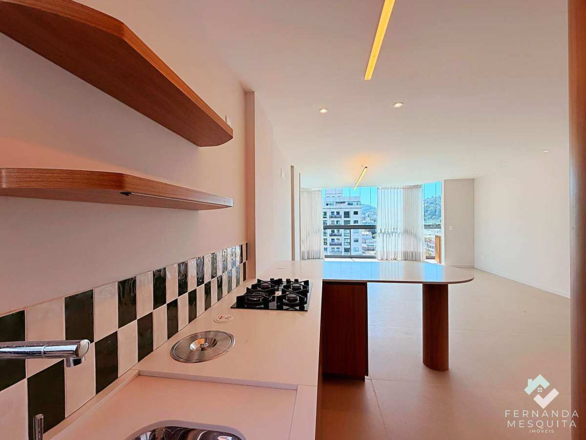 A charmosa cozinha já vem equipada com forno e cooktop, conectada à sala por uma bancada funcional. O imóvel oferece ainda um lavabo com acabamento de alto padrão, garantindo praticidade total para os moradores e visitantes.