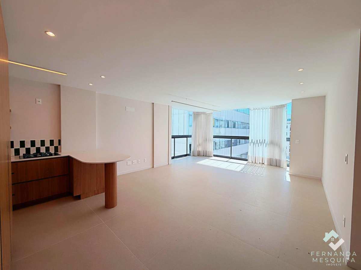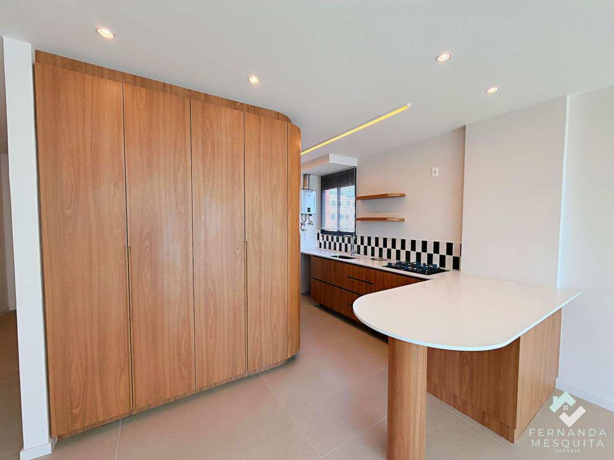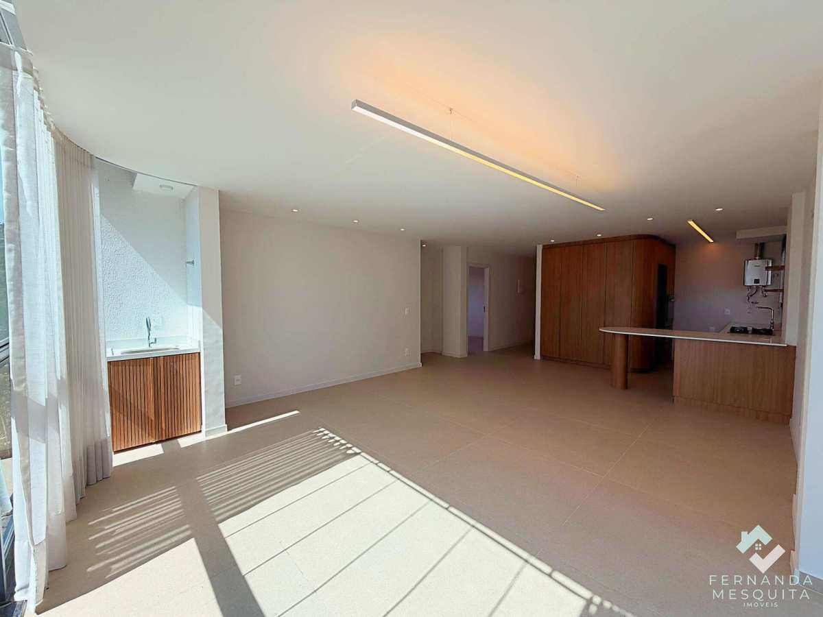 O ponto alto é a integração das antigas varandas, transformadas em um salão de convivência amplo e fluido. Grandes janelões inundam o ambiente com claridade e garantem ventilação impecável em todos os cantos. A sala integra-se à cozinha planejada, criando um fluxo moderno para receber amigos.