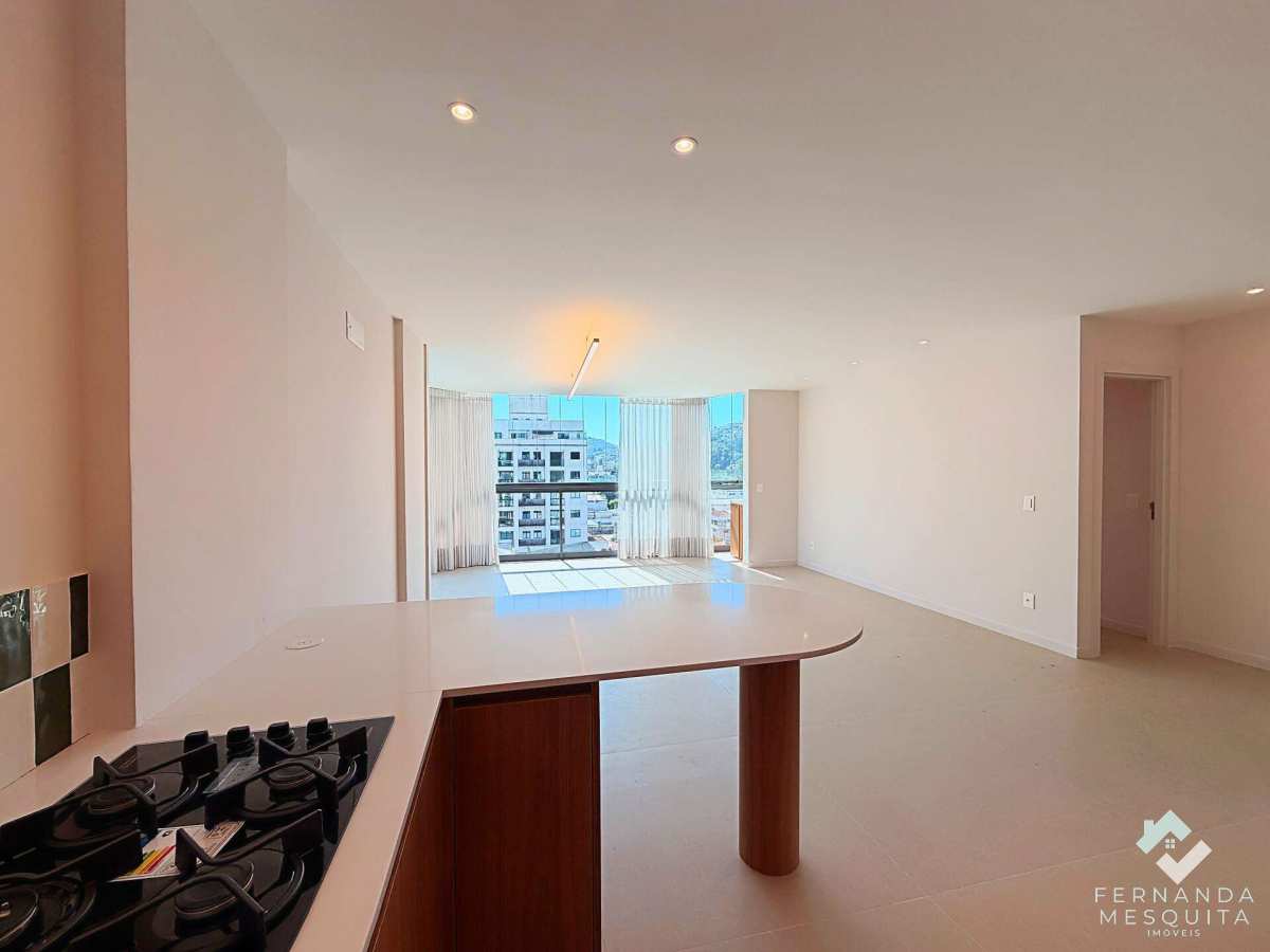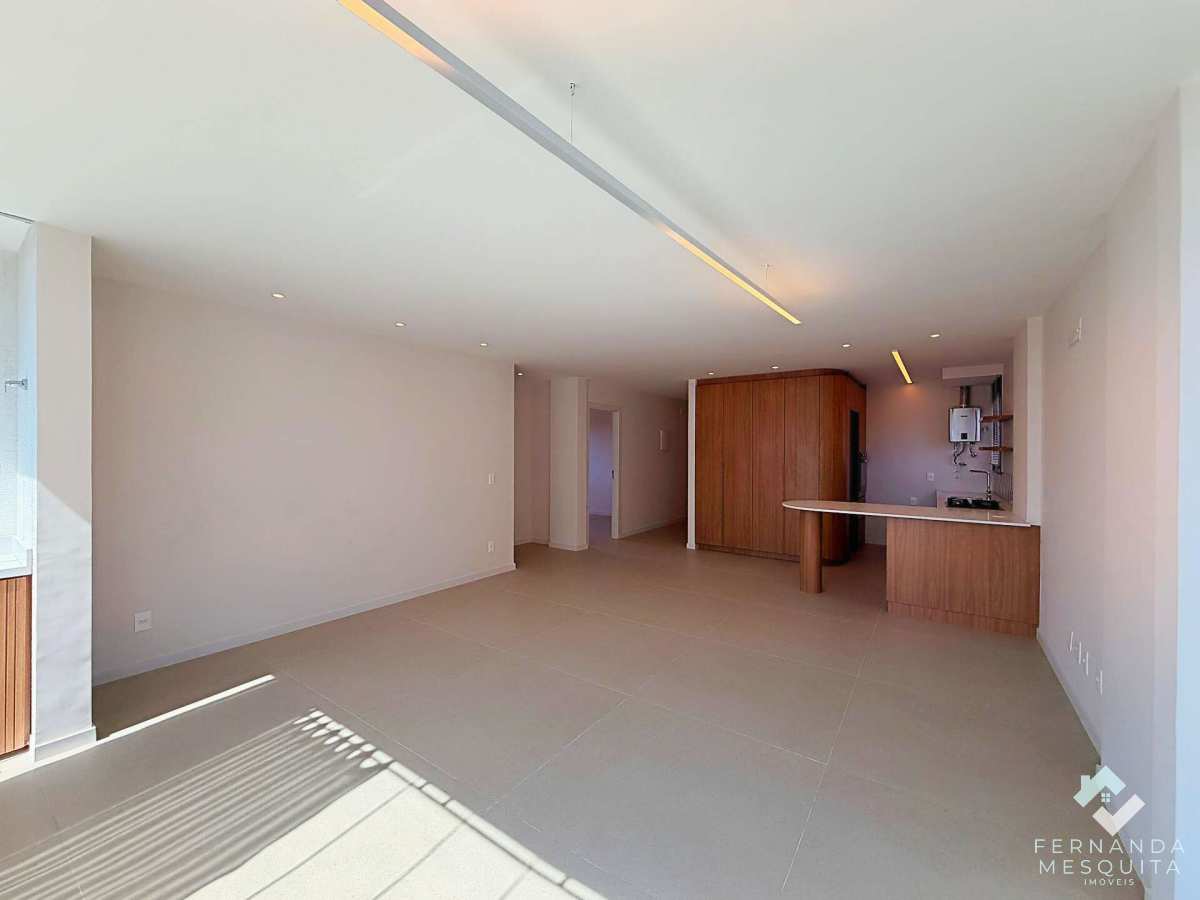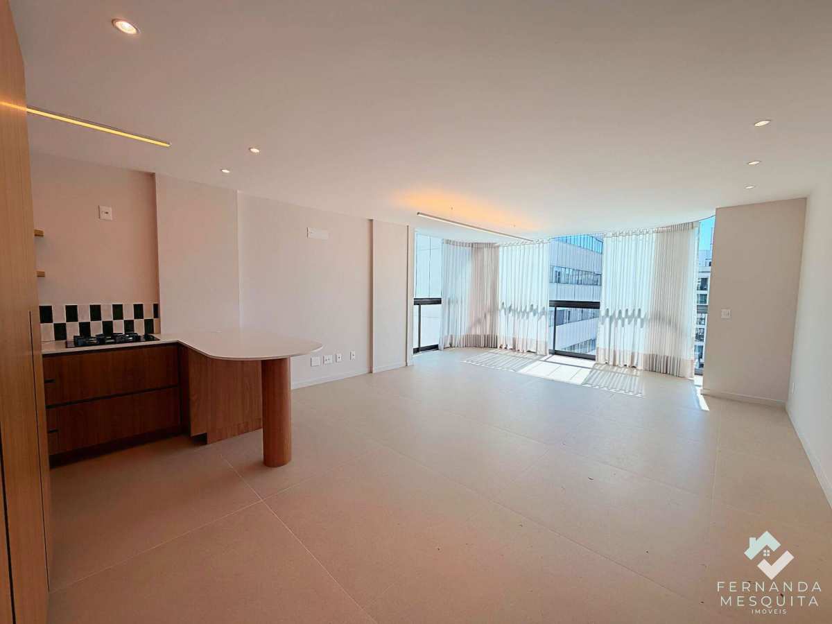 O ponto alto é a integração das antigas varandas, transformadas em um salão de convivência amplo e fluido. Grandes janelões inundam o ambiente com claridade e garantem ventilação impecável em todos os cantos. A sala integra-se à cozinha planejada, criando um fluxo moderno para receber amigos.