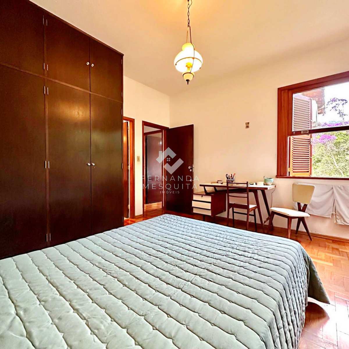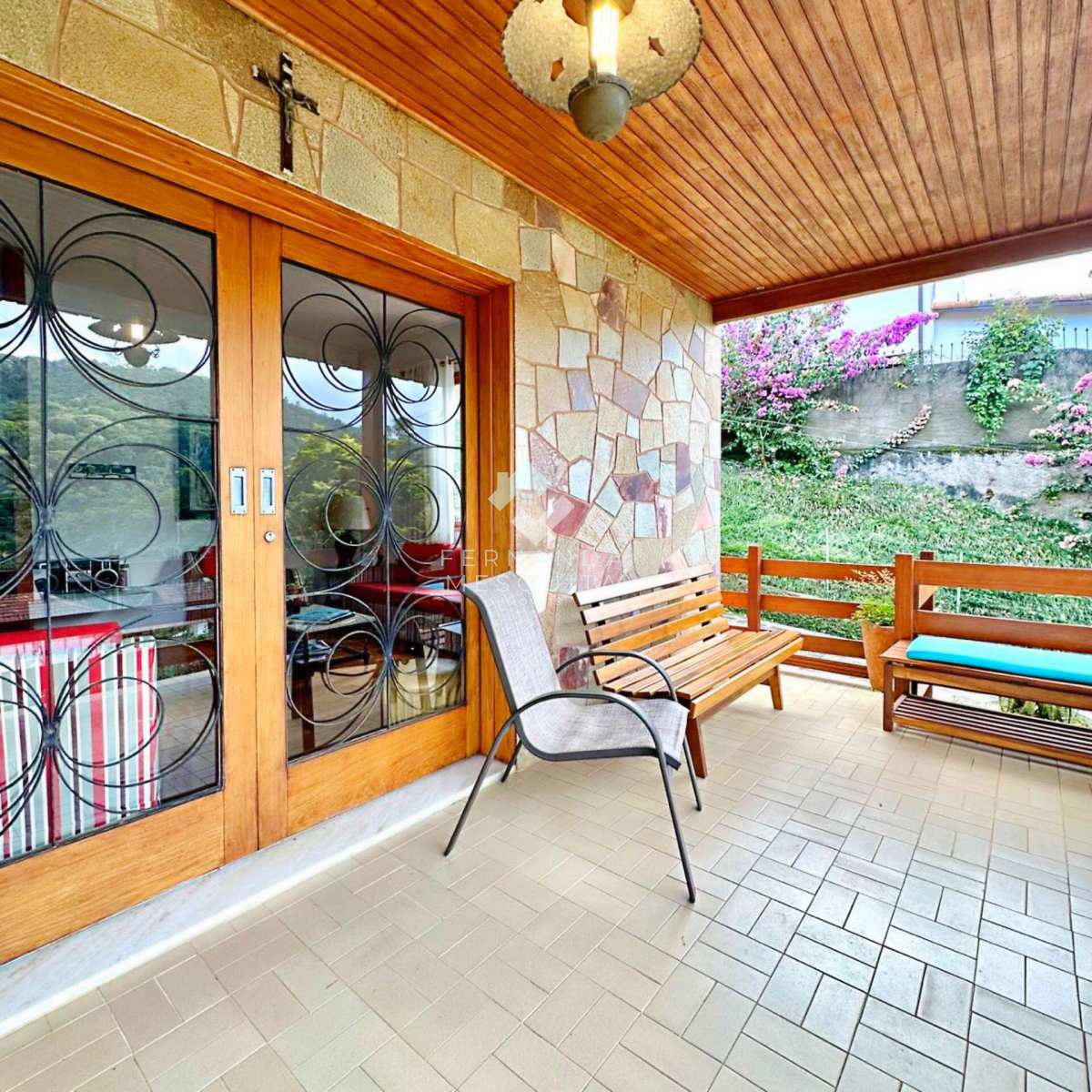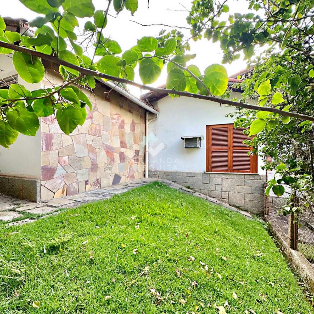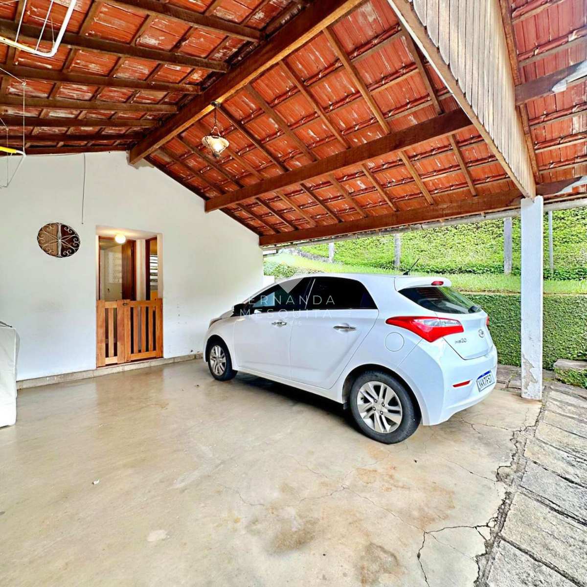 Na área externa, a propriedade conta com amplo quintal, jardim, pomar, quarto de ferramentas, dois quartos de apoio com banheiro, 2 vagas de garagem cobertas e estacionamento.
