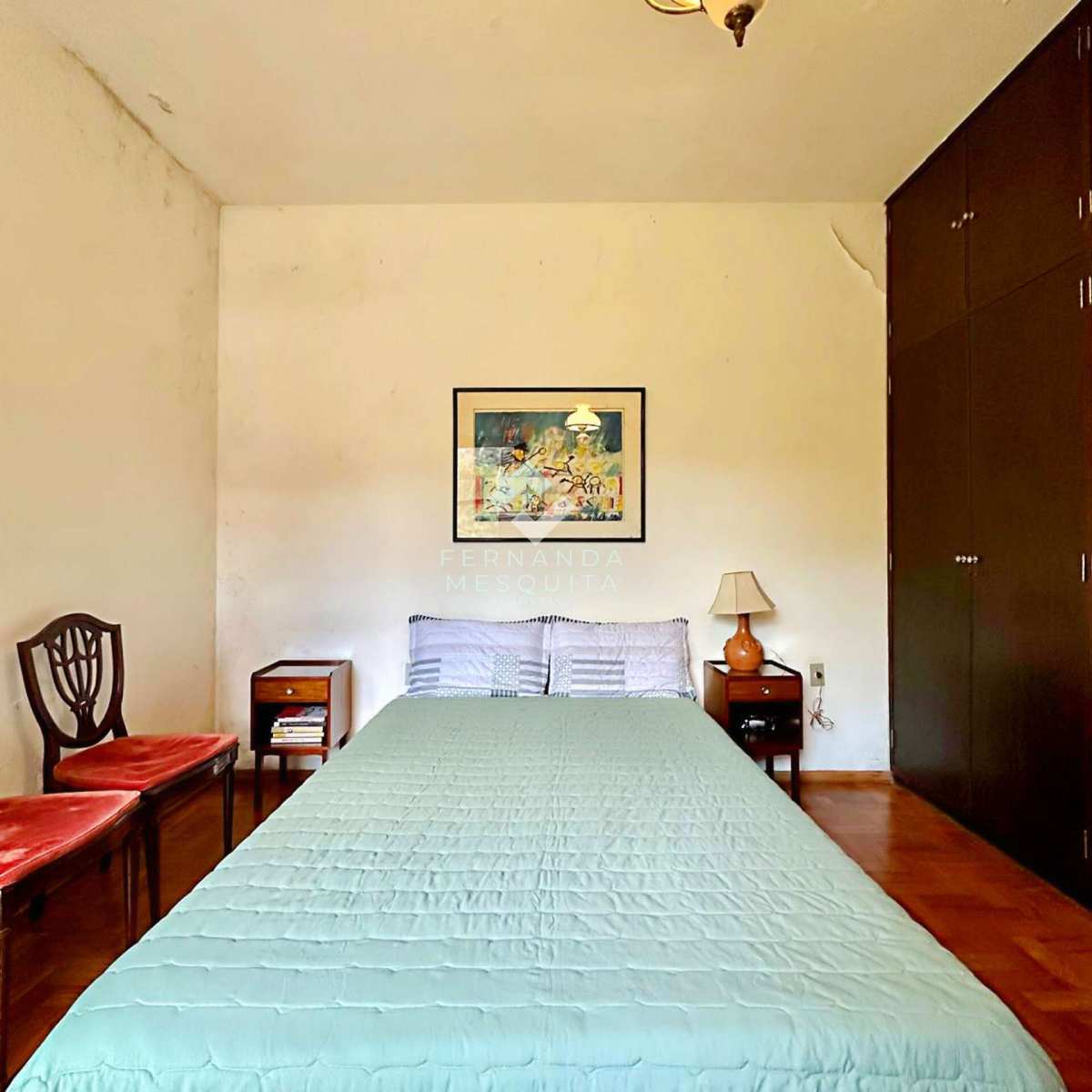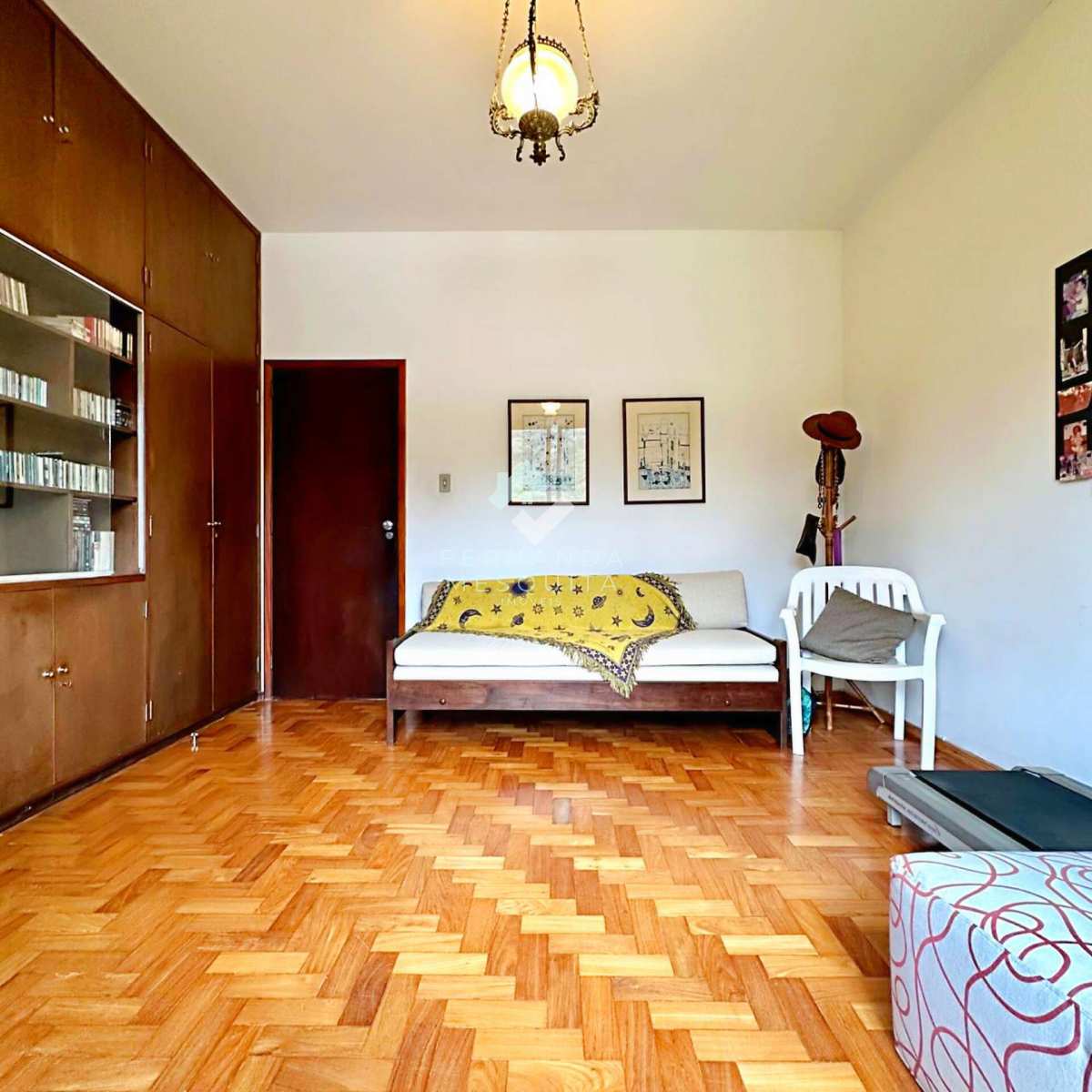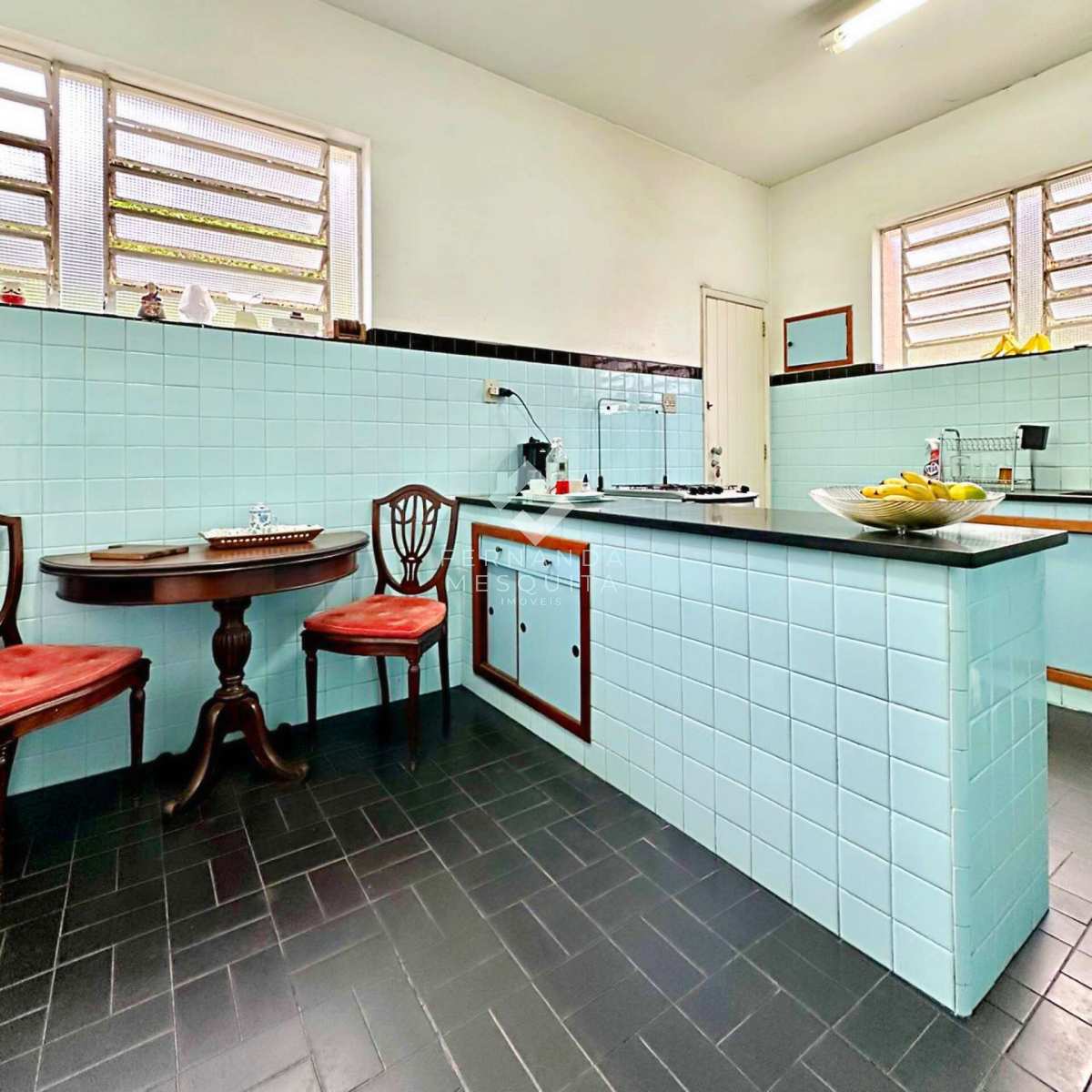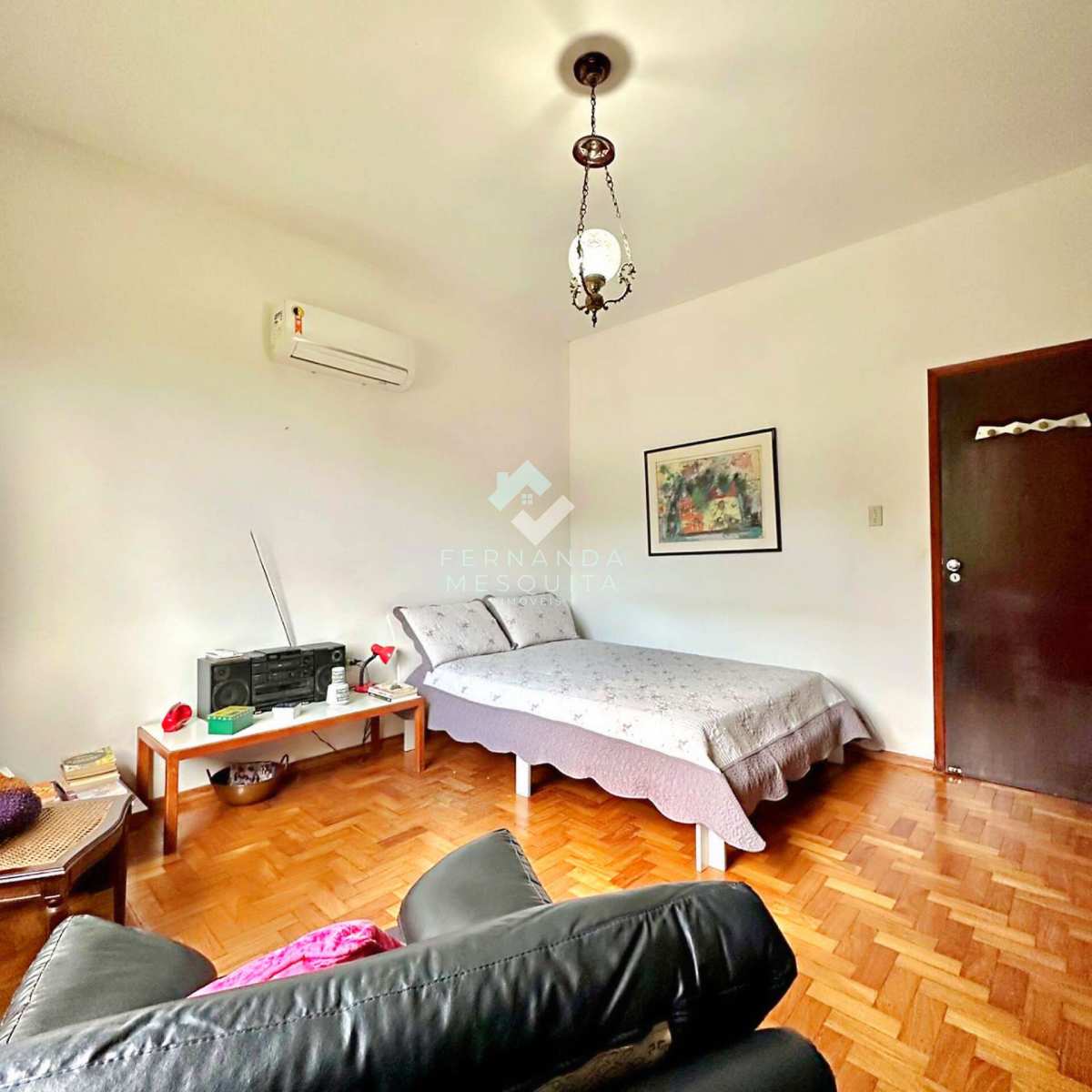 Na área externa, a propriedade conta com amplo quintal, jardim, pomar, quarto de ferramentas, dois quartos de apoio com banheiro, 2 vagas de garagem cobertas e estacionamento.