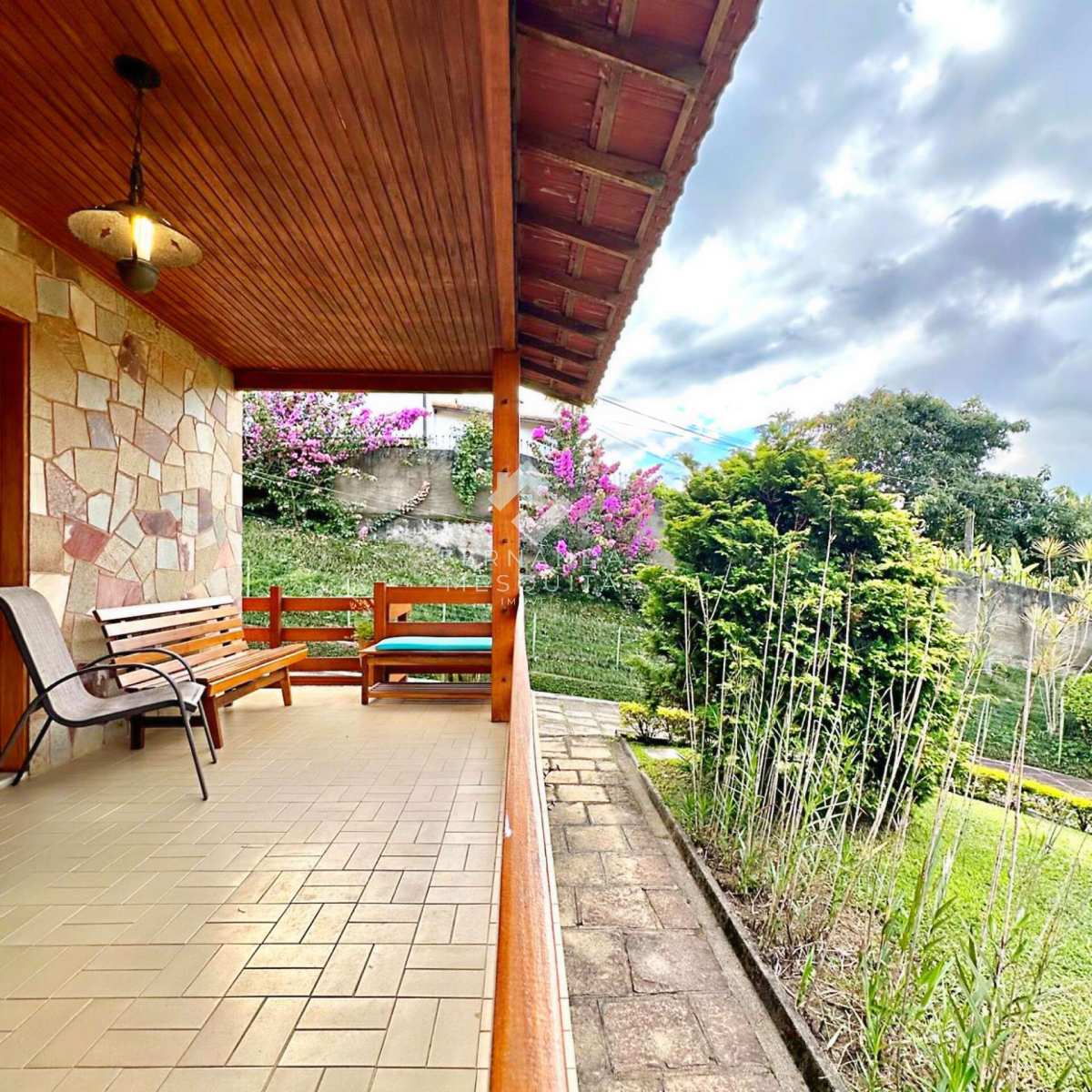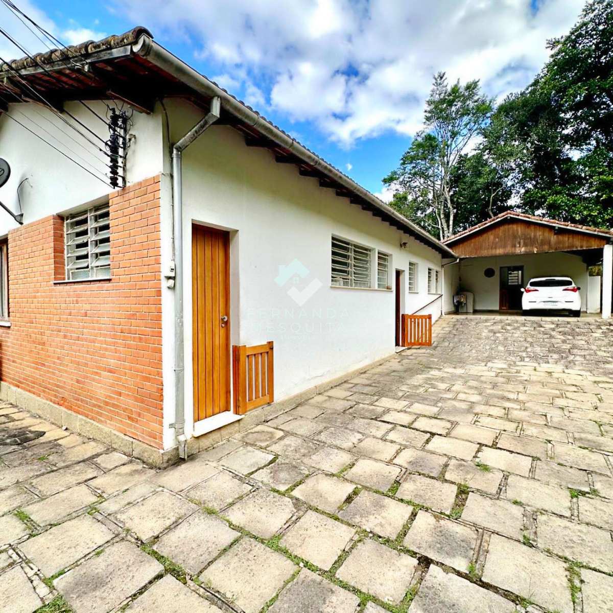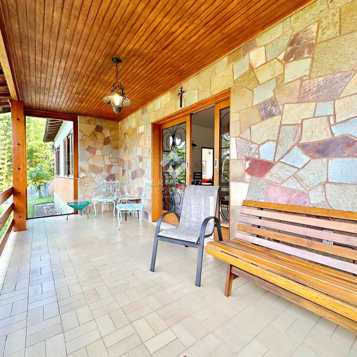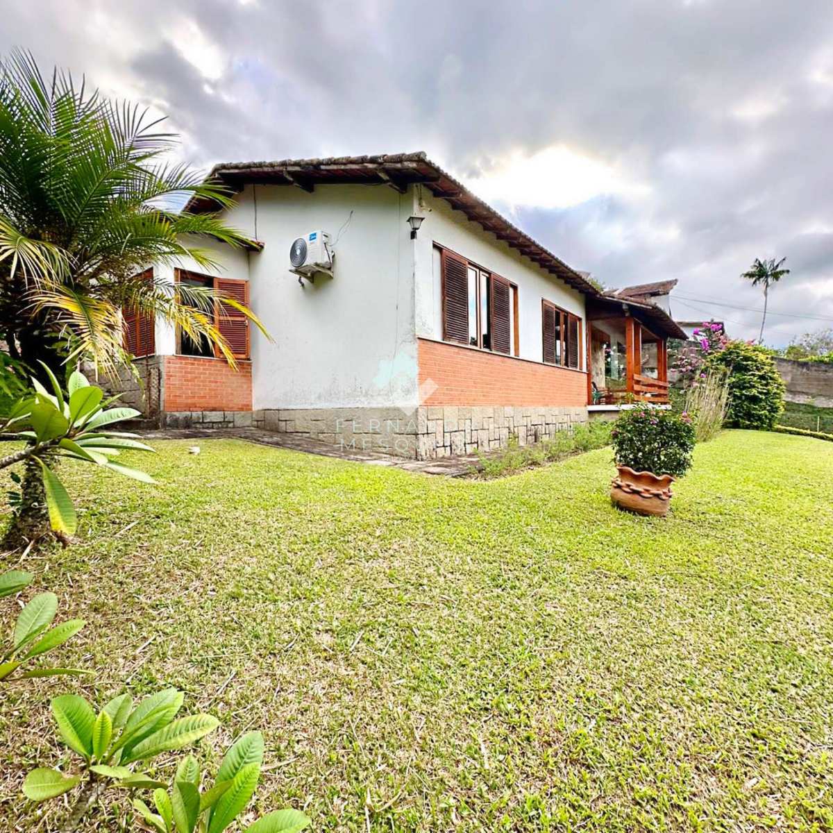 São 161,38 m² de construção em um amplo terreno de 1.280 m², com uma agradável varanda com vista panorâmica para o verde, sala espaçosa em dois ambientes com lareira, lavabo, cozinha com copa, banheiro social com banheira e 3 quartos com armários, sendo 1 suíte, todos voltados para a natureza ao redor.