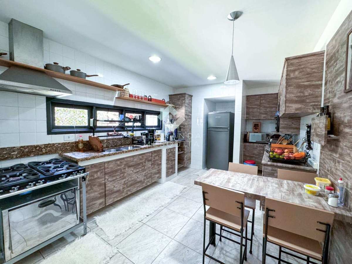A atmosfera acolhedora da casa começa na ampla sala em três ambientes com lareira, perfeita para reunir a família em momentos especiais. No mesmo pavimento, um dormitório prático oferece flexibilidade para hóspedes ou home office, enquanto o banheiro social complementa o conforto. A cozinha com armários planejados foi pensada para quem valoriza organização e funcionalidade, e se integra à área de serviço e à dependência completa de empregada, proporcionando praticidade para a rotina.