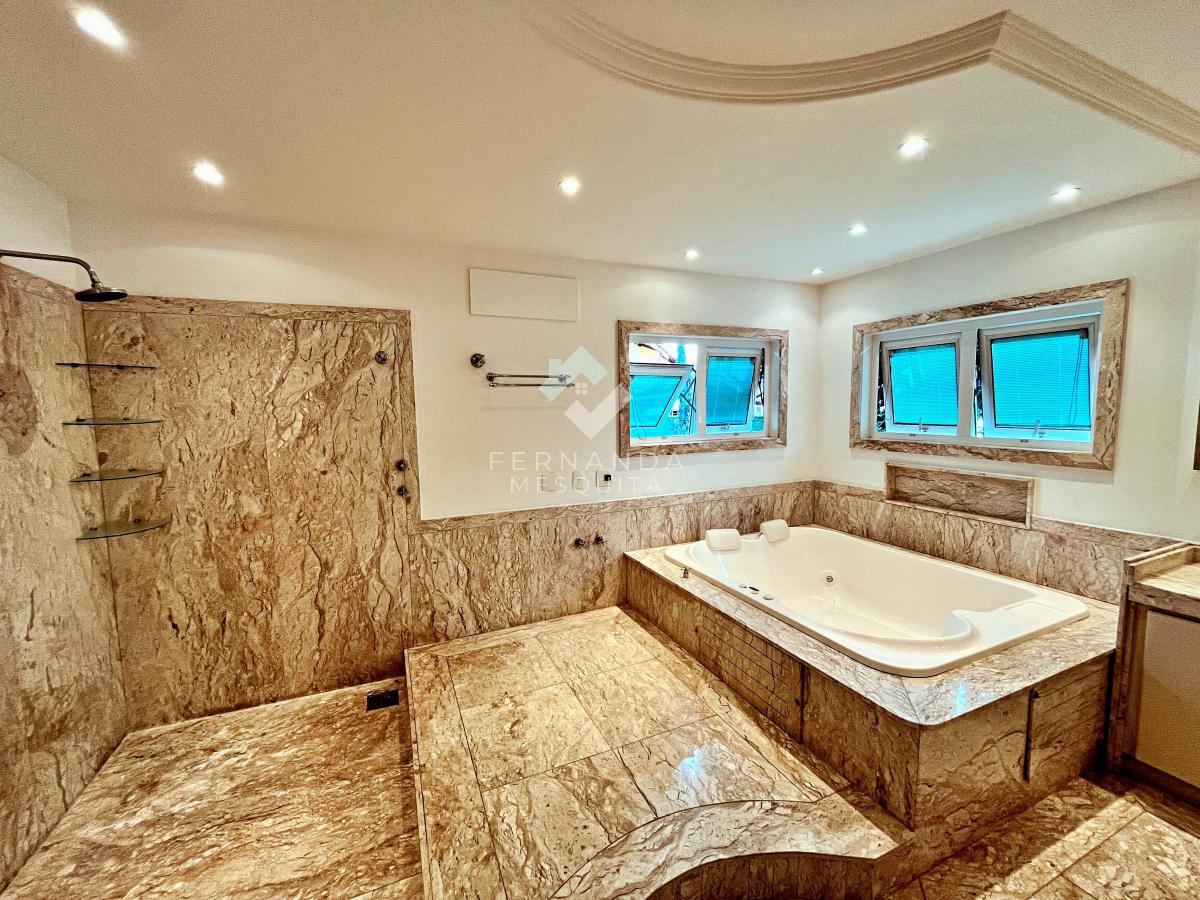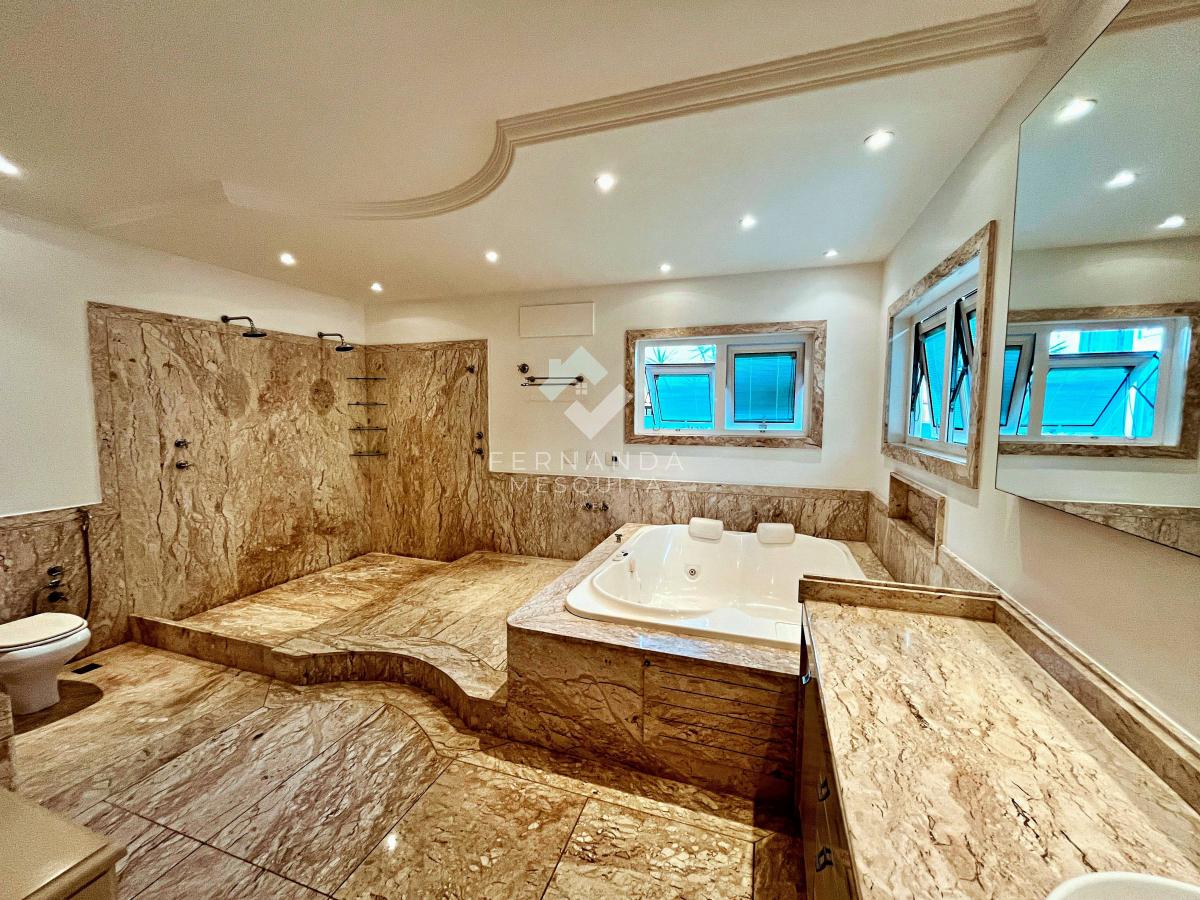 No segundo pavimento, 4 suítes espaçosas, incluindo uma suíte master com closet, banheiro luxuoso em mármore e banheira de hidromassagem, proporcionam o máximo de conforto. Para quem precisa de um espaço a mais, o terceiro pavimento oferece um sótão amplo e versátil, com aquecimento solar e a gás, além de ar-condicionado em todos os cômodos.