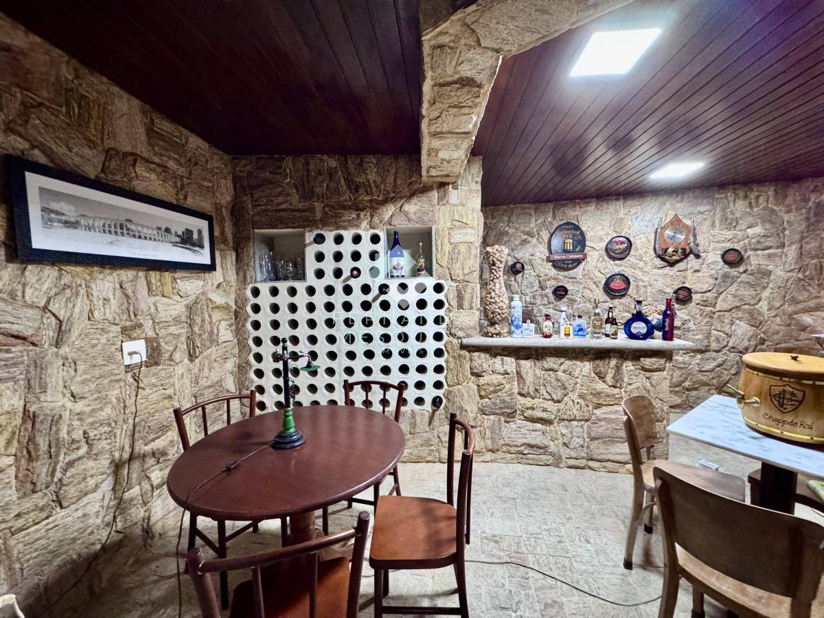 Salão de jogos com lareira e adega com cozinha anexa para momentos especiais.