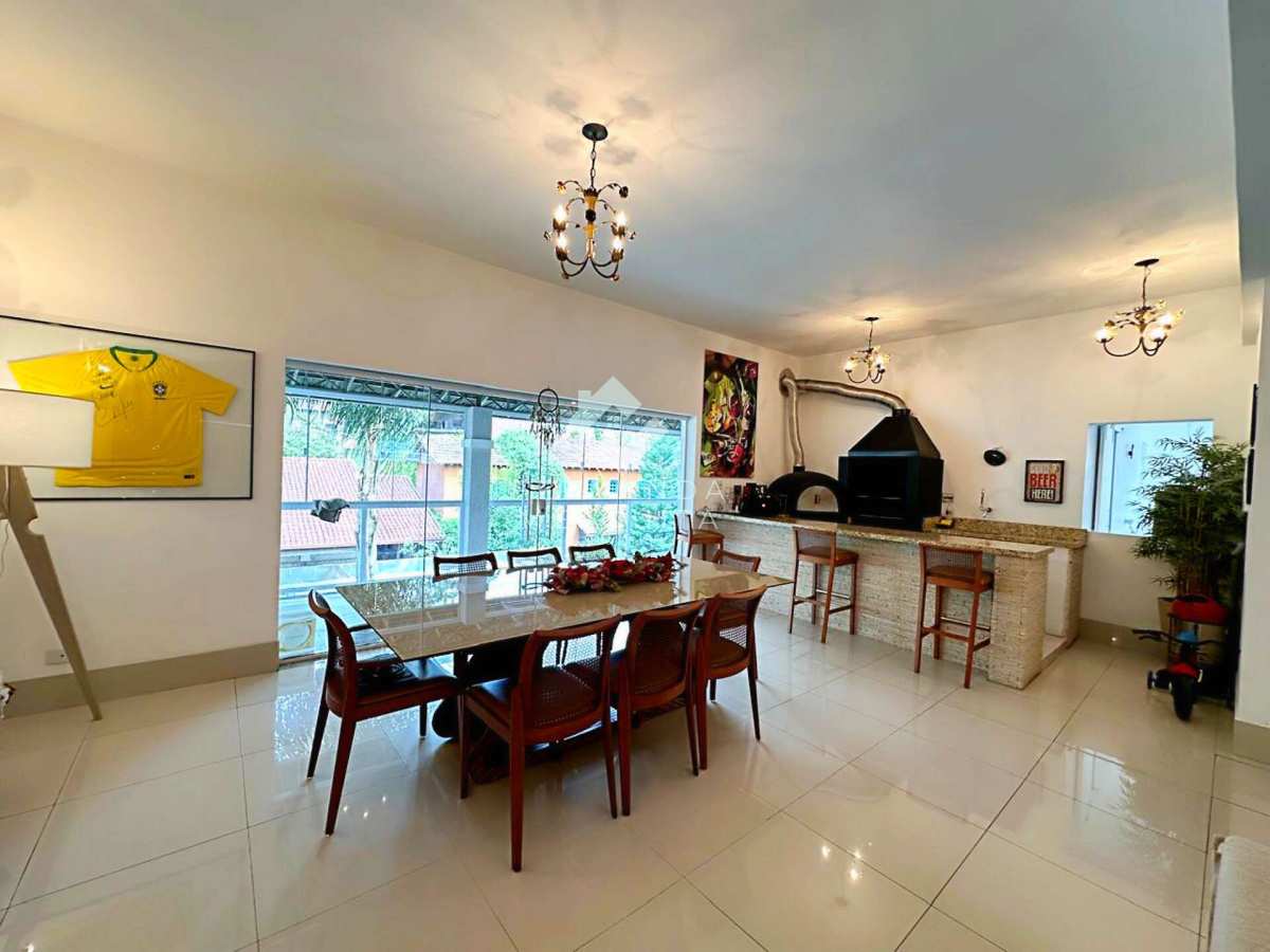 Na área íntima, a casa oferece quatro dormitórios bem distribuídos, sendo duas suítes que garantem conforto e privacidade. O imóvel também possui escritório, academia, depósito e um cômodo adicional que pode ser adaptado de acordo com as necessidades do novo morador — seja para um estúdio, ateliê, sala de jogos ou mais um quarto.