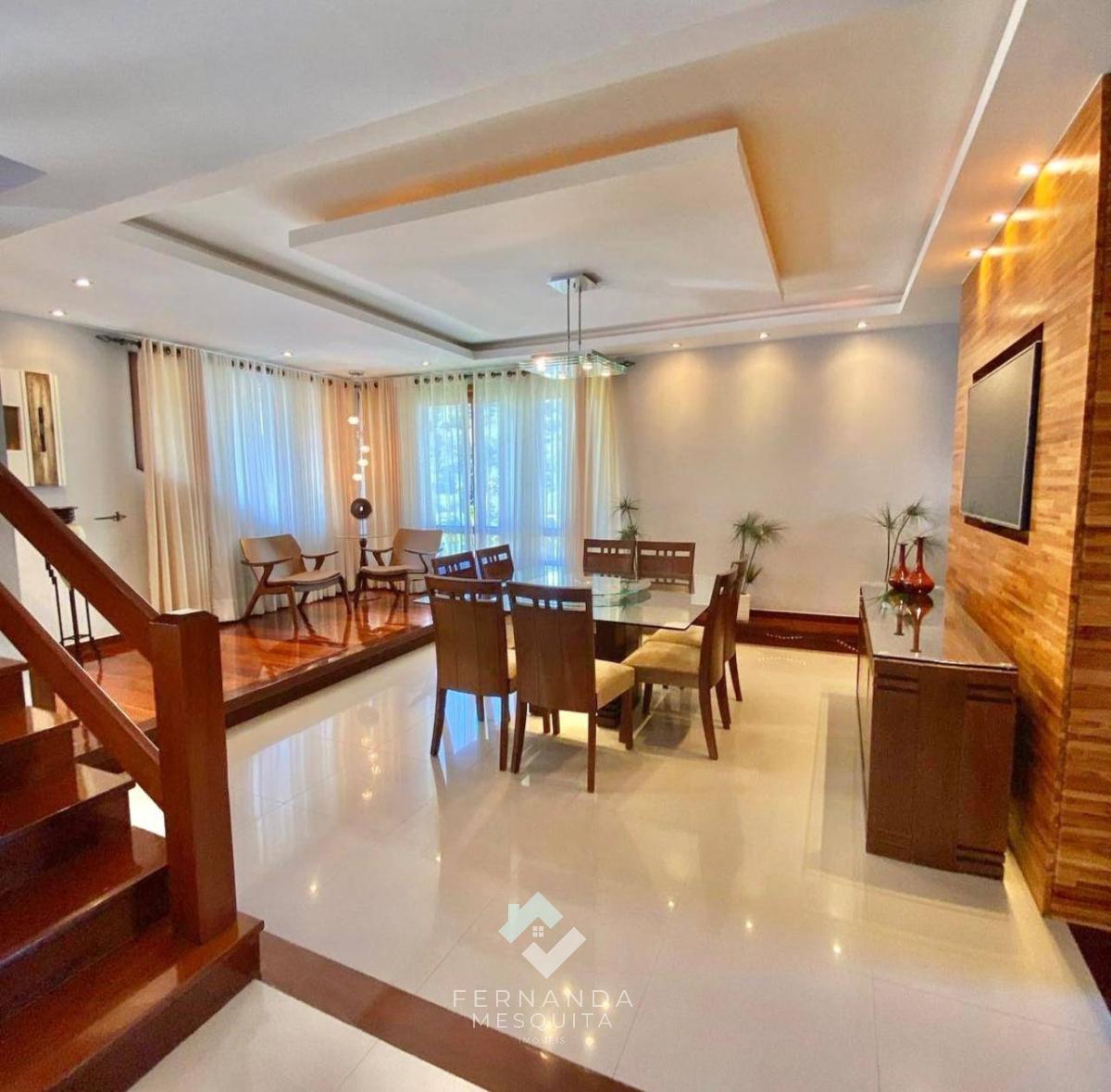 Com um design moderno e maravilhoso, essa casa possui tudo que você precisa para viver com conforto e sofisticação. No primeiro pavimento, você encontra uma garagem espaçosa para 06 carros, um hall de entrada imponente, lavabo, ampla sala com lareira para os dias mais frios, espaço com bar para receber os amigos, sala de jantar e de refeições, despensa, cozinha planejada e área de serviço.