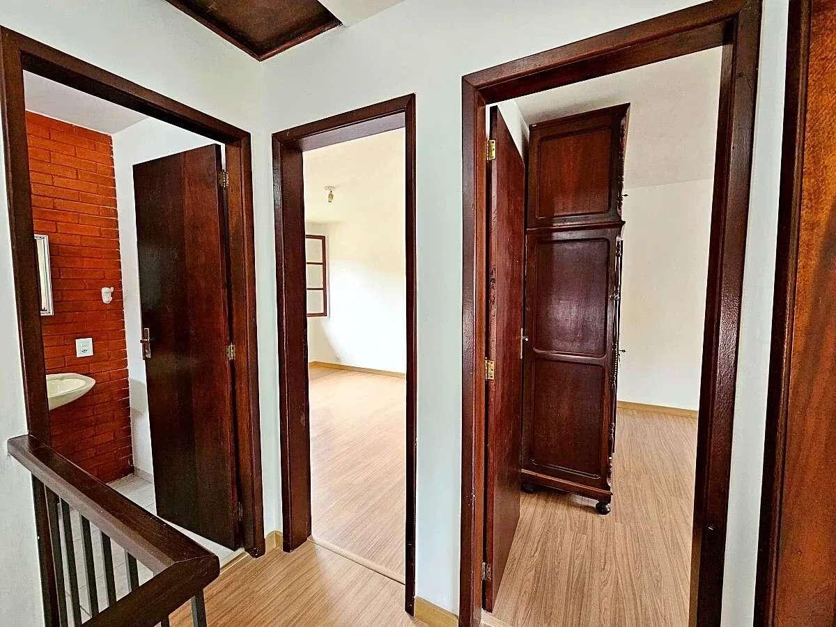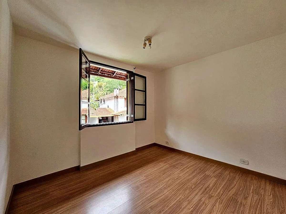 Ao entrar, a sala ampla com lareira cria uma atmosfera acolhedora e elegante, perfeita para os dias mais frios da serra e para receber amigos com conforto. A cozinha possui armários planejados e excelente aproveitamento de espaço, enquanto os quartos também contam com armários, oferecendo praticidade desde o primeiro dia.