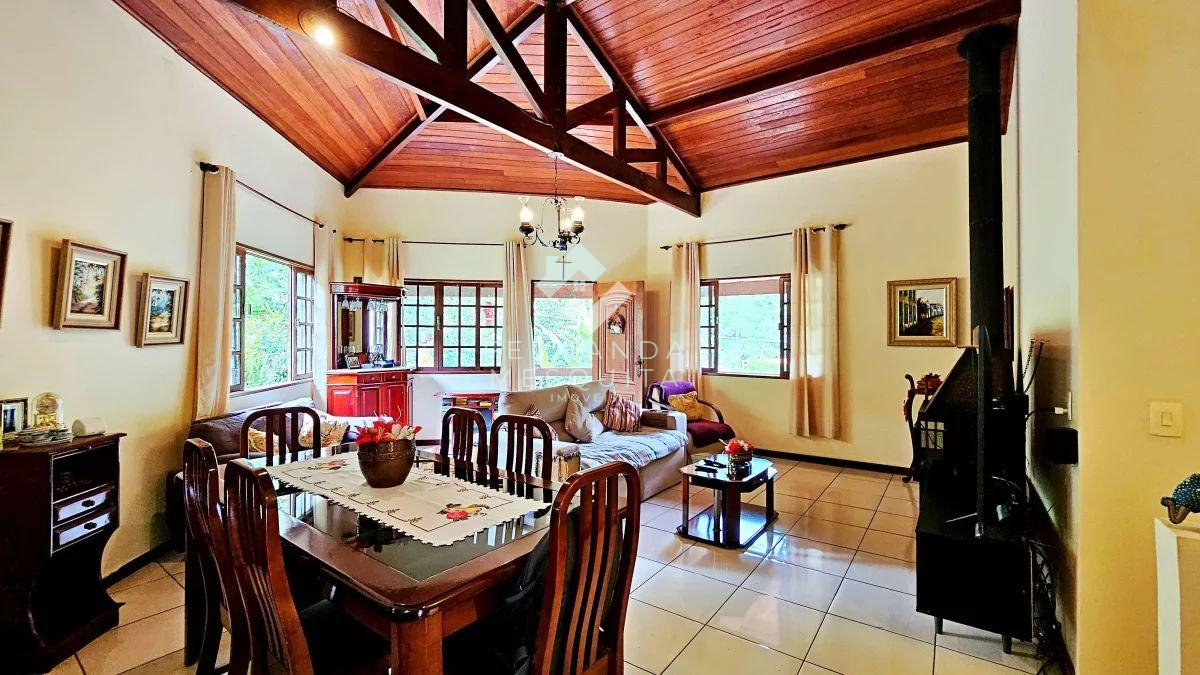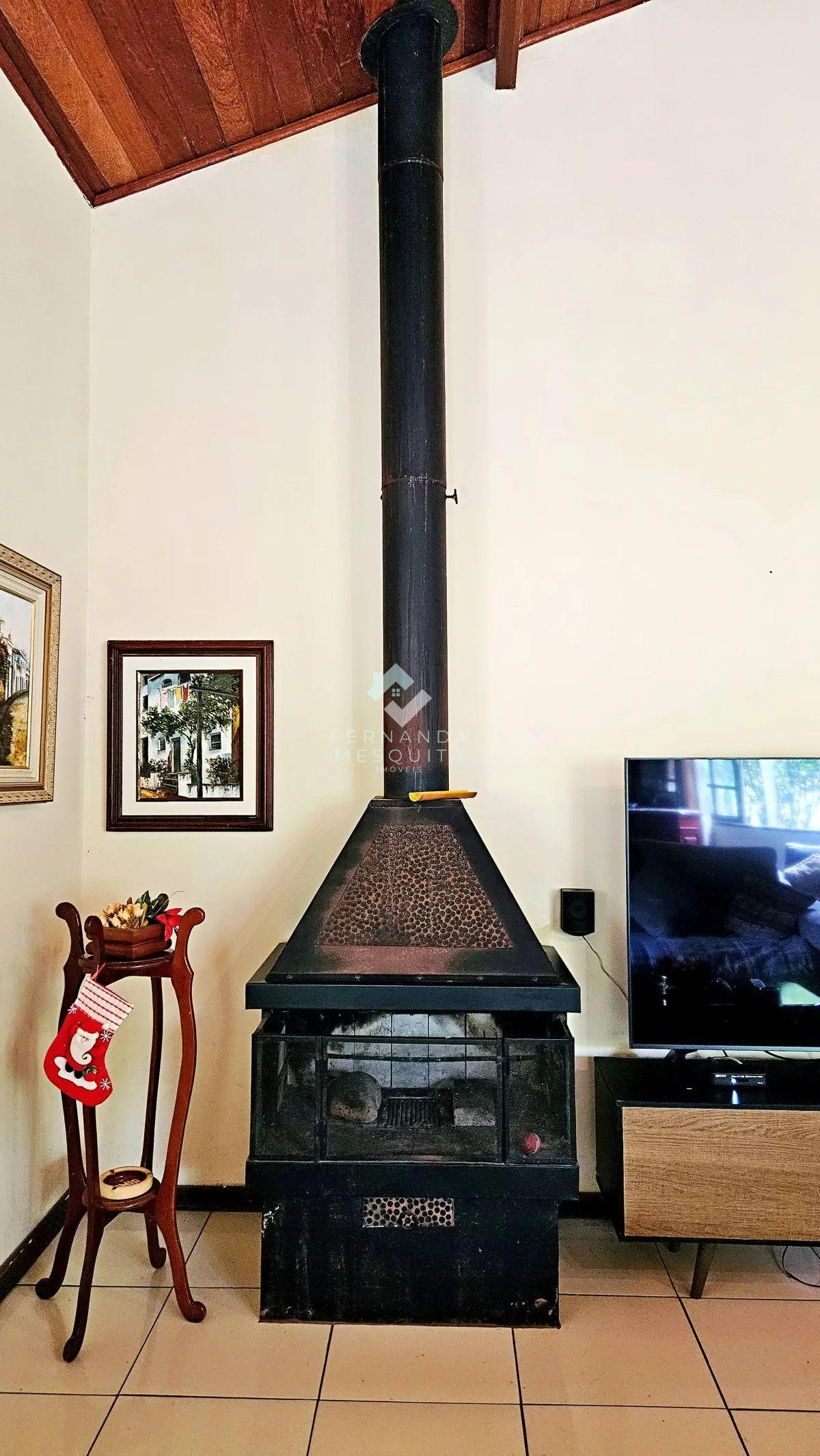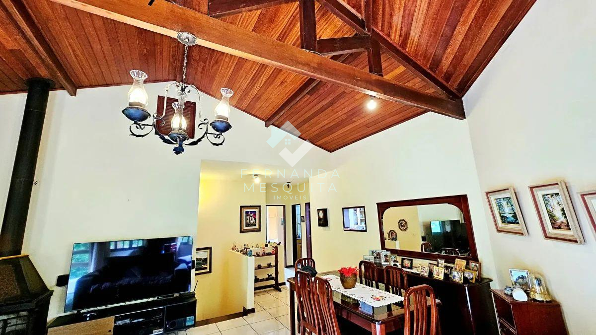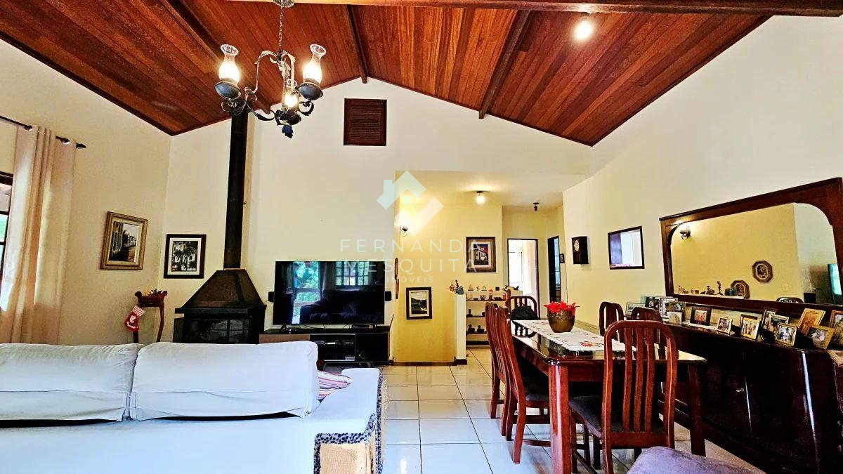 - Sala ampla com pé-direito alto e aconchegante lareira, perfeita para os dias mais frios da serra.