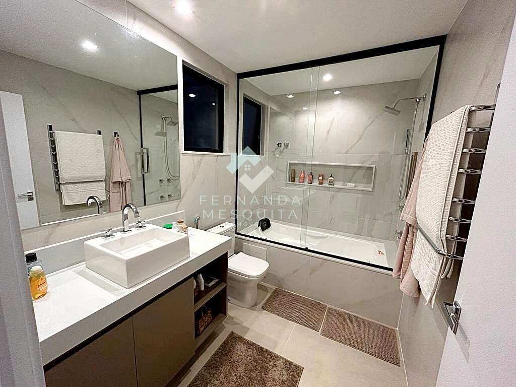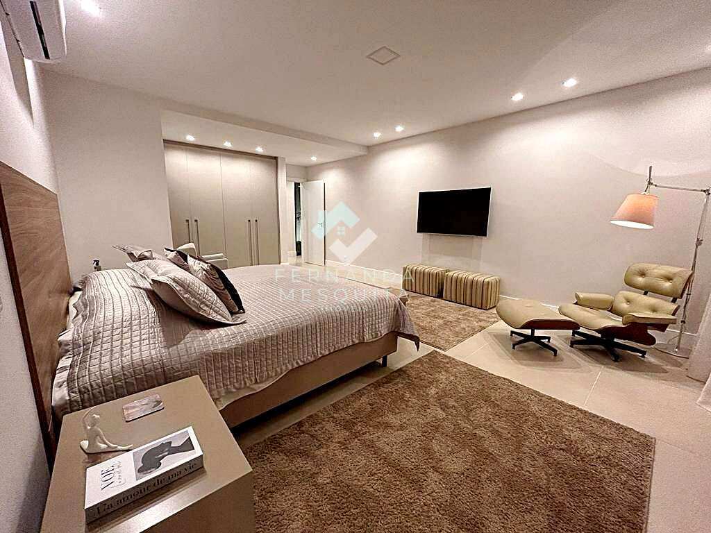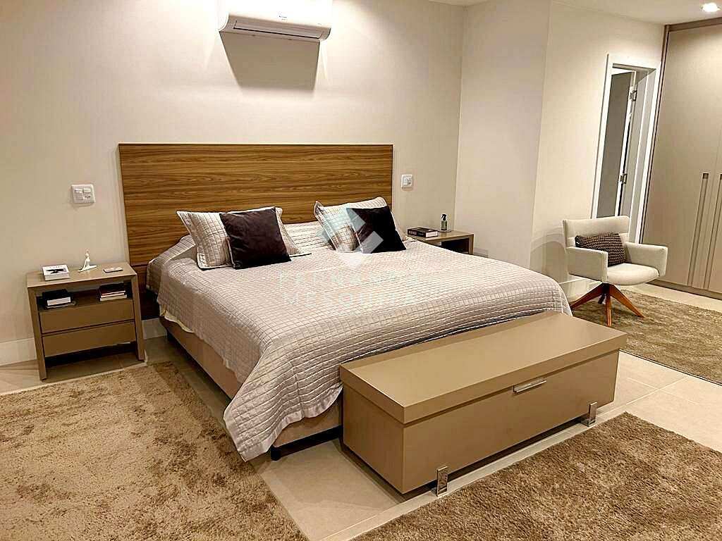 A suíte master é um verdadeiro refúgio: dois banheiros (ele/ela), sendo um com spa, sala íntima privativa com TV, closet espaçoso e varanda com vista para o verde. Além dela, a área íntima conta com mais quatro suítes que garantem conforto e privacidade.